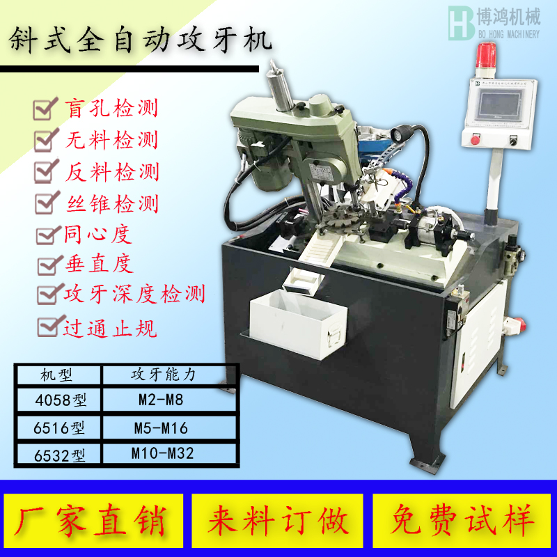 二、要了解有關攻絲機的能攻最大值是多少,一般要求是45號鋼,而且攻絲時深度要達到絲錐直徑的兩倍,並能一次性完成整個的攻絲過程。